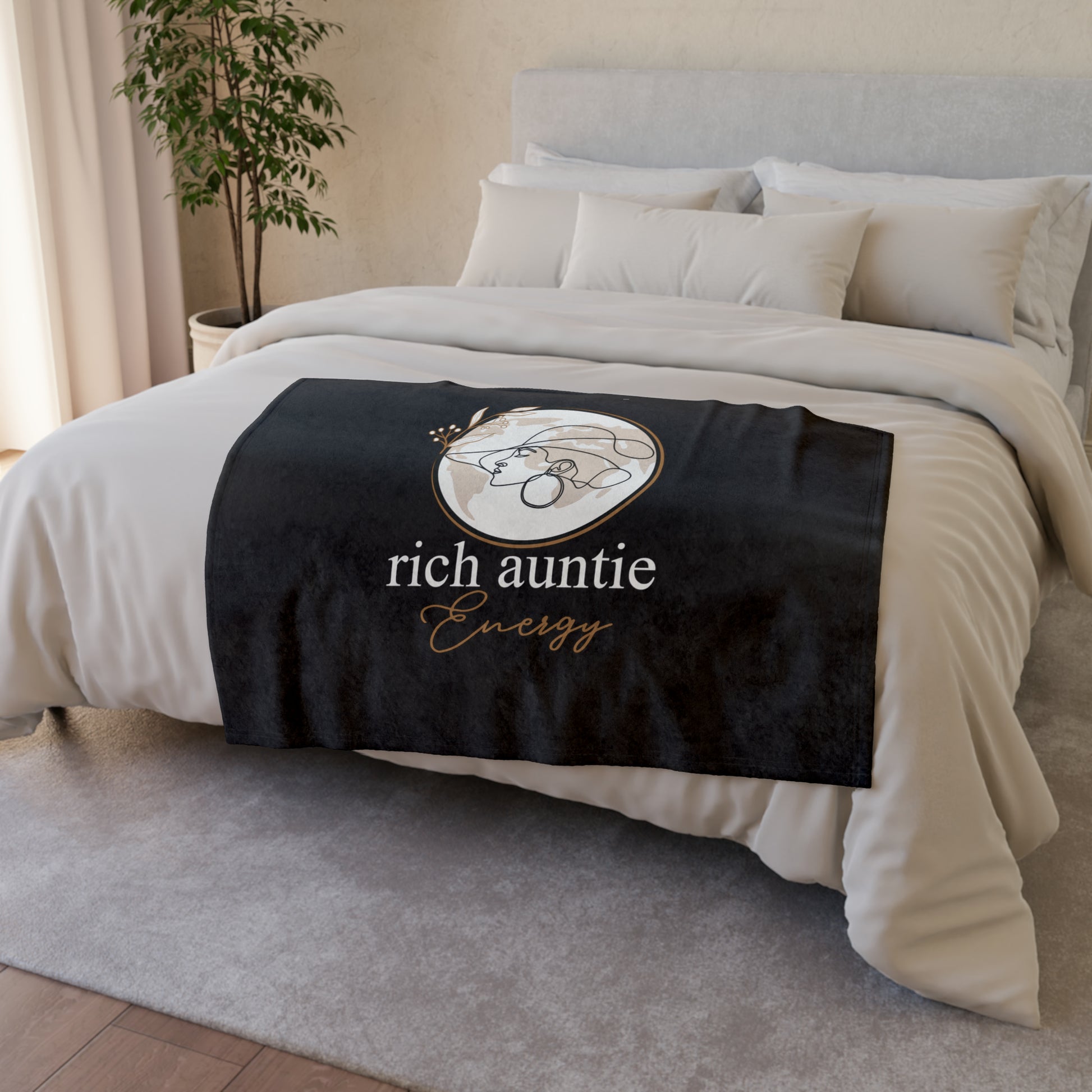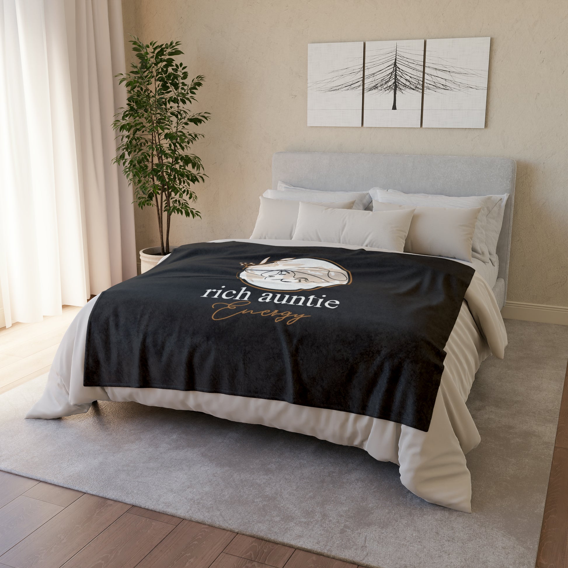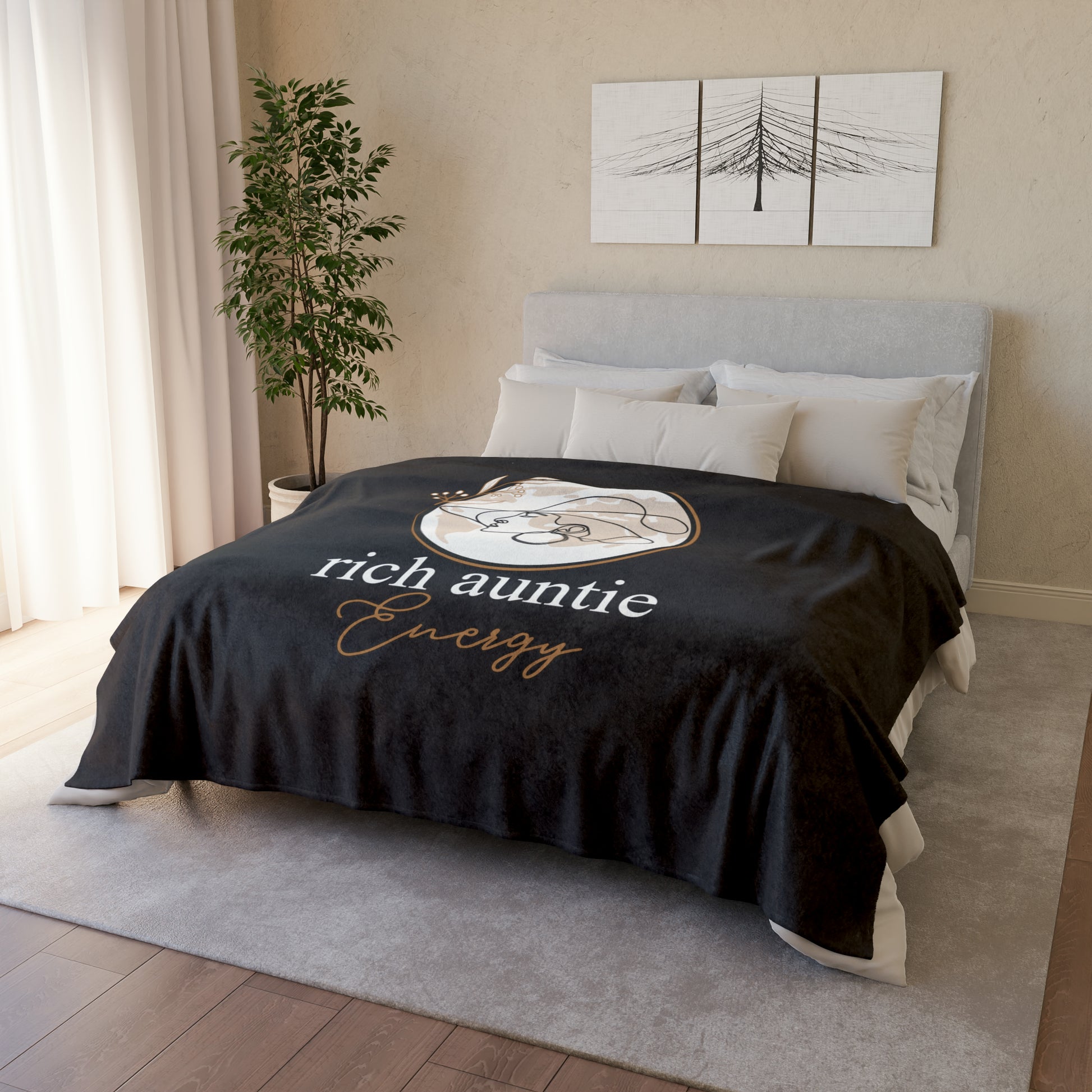 Introducing our luxurious rich auntie plush fleece blanket, designed to wrap you in comfort and style. This blanket is perfect for anyone who appreciates the finer things in life. Whether you're indulging in some well deserved self care or seeking the perfect gift for your beloved aunt, this blanket is sure to impress!